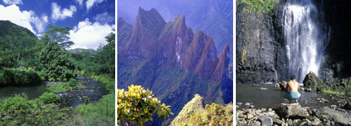 Tahiti et les îles hautes (Société, Marquises, Australes) proposent de nombreuses randonnées au cœur des montagnes secrètes d'où la vue embrasse, vertigineuse, les lagons, les baies, l'immensité du Pacifique.