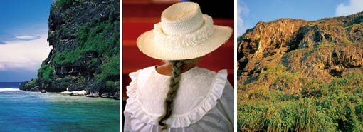 Ses montagnes de velours vert sombre, dont les pentes couvertes de fougères accrochent des lambeaux de nuages, culminent à plus de 400 mètres dans le ciel.