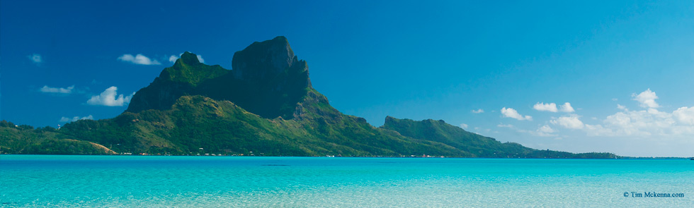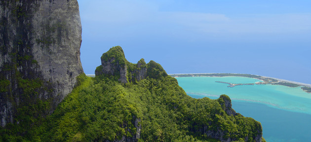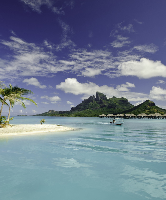 Bora Bora, c’est un volcan posé sur l’un des plus beaux lagons du monde, qui décline des nuances infinies de bleus, du plus translucide au plus profond. Les immenses motu aux plages de sable blanc frangées de cocotiers entourent le lagon émeraude peuplé d’une multitude de poissons et de coraux aux couleurs féeriques. L’harmonie du décor est parfaite.