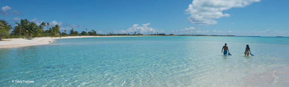 À un peu plus d’une heure d’avion de Tahiti, Rangiroa offre aux visiteurs des possibilités de séjours variées, adaptées aux envies et au budget de chacun : Différentes catégories d’hôtels et de pensions de famille sont proposées, tout comme des croisières groupées ou privées. 240 motu enserrent ce lagon de 1 640 km2, véritable aquarium naturel démesuré que le Commandant Cousteau a classé parmi les plus beaux sites de plongée au monde. Mecque des plongeurs du monde entier, il existe une dizaine de spots au caractère bien différent pour explorer ces fonds marins d’une richesse exceptionnelle. Et même les non-plongeurs y trouvent leur bonheur : l’eau est si claire que l’on peut admirer de véritables ballets aquatiques à l’œil nu ou, mieux, avec un simple masque. Rangiroa, ce sont aussi des plages de rêve, un sable doux et rose pâle comme l’intérieur des coquillages, un lagon à l’intérieur du lagon... Tout pour profiter des plaisirs de la vie sur l’eau et sous l’eau, l’univers quotidien des 2 000 habitants.