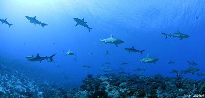 Requins pélagiques, requins de récifs, requins gris, requins-citron, requins-marteau, dauphins, carangues arc-en-ciel, tortues, napoléons, raies léopard, raies aigle, barracudas, murènes, raies manta et autres poissons tropicaux.